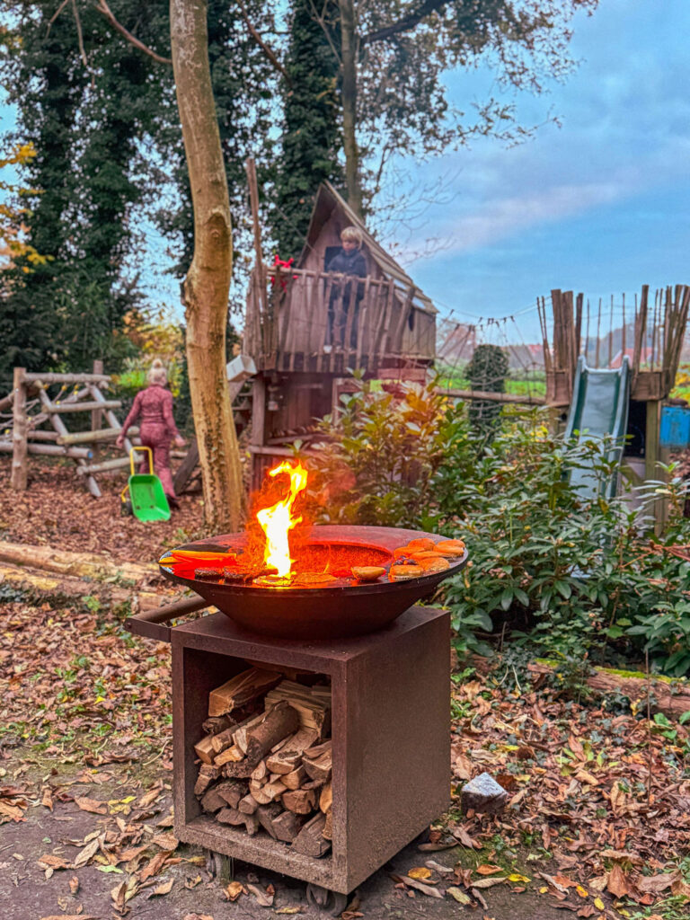 De kinderen worden door het pronkstuk van het bos “hun boomhut” er naar toe gelokt, takken sprokkelen, hun fantasie de vrije loop laten, spelen met alles wat het bos hun geeft, savonds marshmallows warmen boven de vuurplaats…